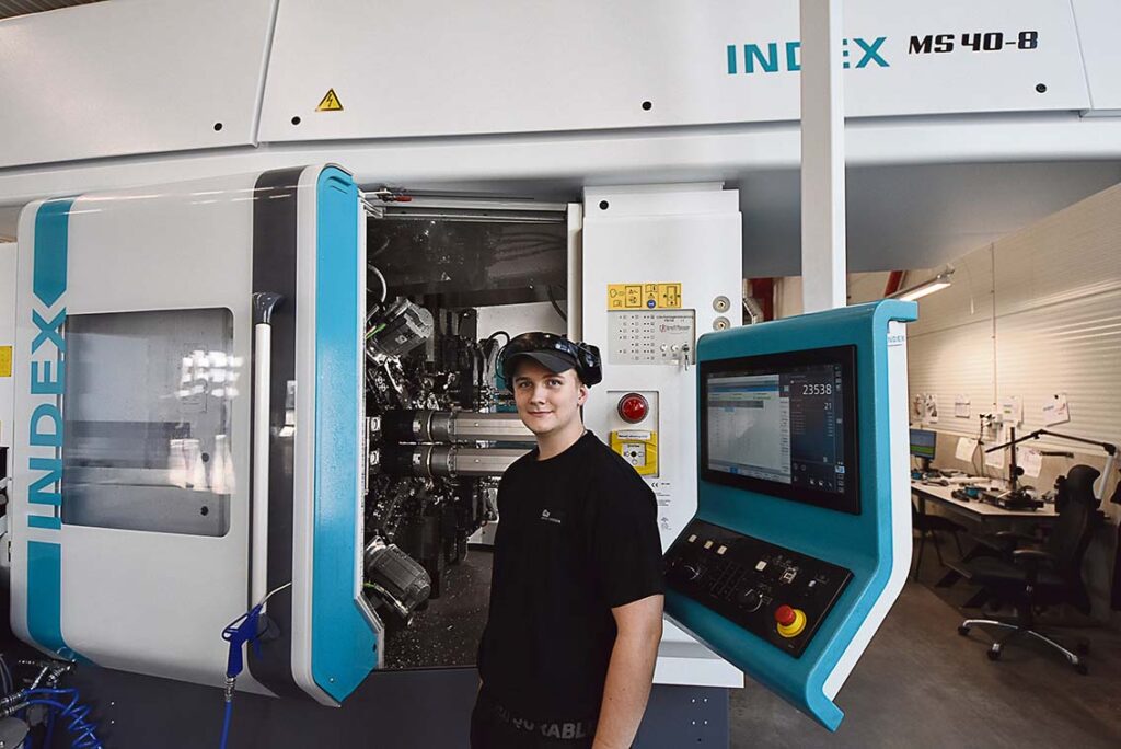 Kompletterat med Index egna stångmagasin MBL har man en svarv som producerar detaljer dygnet runt.