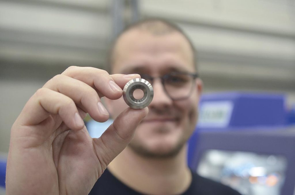 Vi får veta att svarveriet hos Industrilås ligger i framkant när det gäller teknik. Om vi parar ihop nytänkande med ett stort inslag av lösningsorienterad teknik så hittar vi mycket av det fokus som Mikael Karlsson och hans medarbetare har ”samlat i ladorna”.